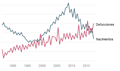 Informa el INE que 2017 cosechó un total de 391.930 nacimientos en España, 8,4 por cada 1.000 habitantes, lo cual es una cifra exigua, exangüe y exánime, y la más diminuta en el último decenio, desde el año 2007.